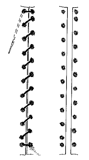 Как видно, она состоит из трех частей, а шнуровка должна крепиться с одной стороны в боковом шве, с другой - между центральной и прилегающей составлющей.