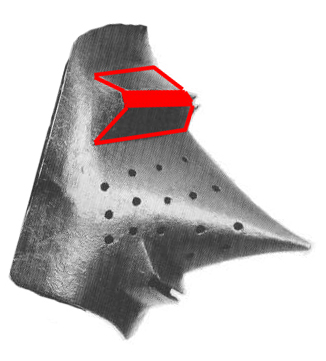 Вперед прорези направлены на всех других забралах. Здесь, как раз, перед глазами металл.На мой бугуртно-дилетантский взгяд прорези там направлены не столько вниз сколько вперед