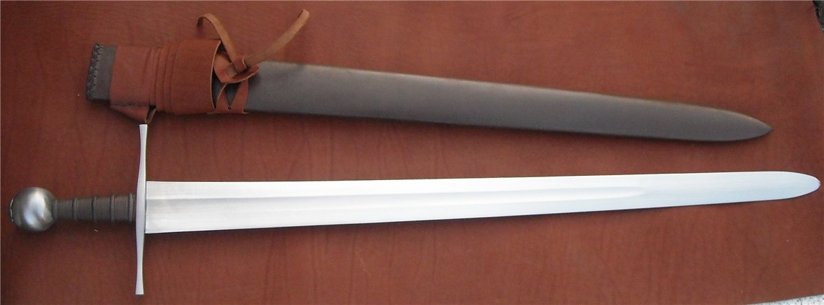 Фальшион Бугуртный. Стилизация фальшиона св. Михаила. сталь 65 г. закалка 50 ед. длина лезвия 65 см, общая 82 см. Вес 1400 р. Шлифовка, без полировки. Цена 5700 р.