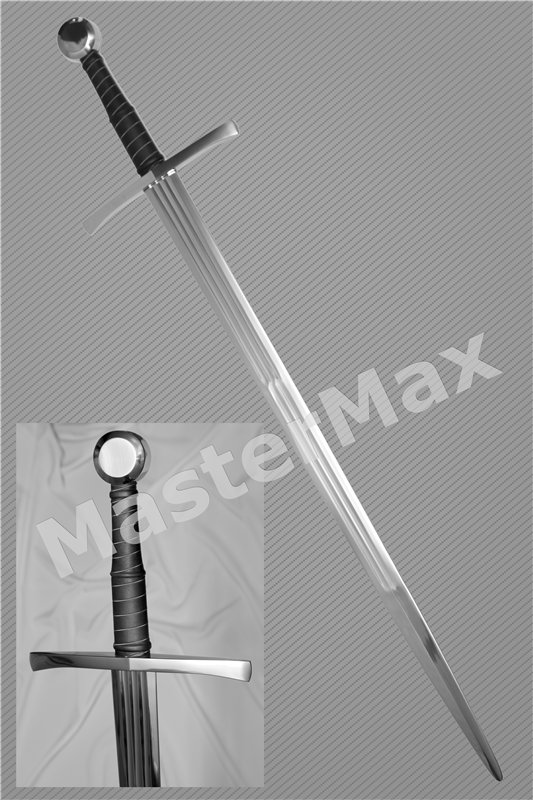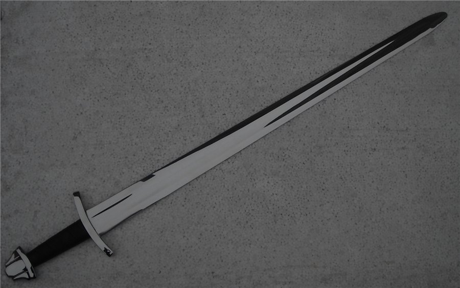 Меч полуторный тип ХХа с пятью долами на стороне. Вариант исполнения. Сталь 65 г, высокоуглеродистая, легированная, закалка 50 ед. Длина лезвия 90 см, общая 117 см. Ковка перекрестья, шлифовка, полировка. Цена 13500 р