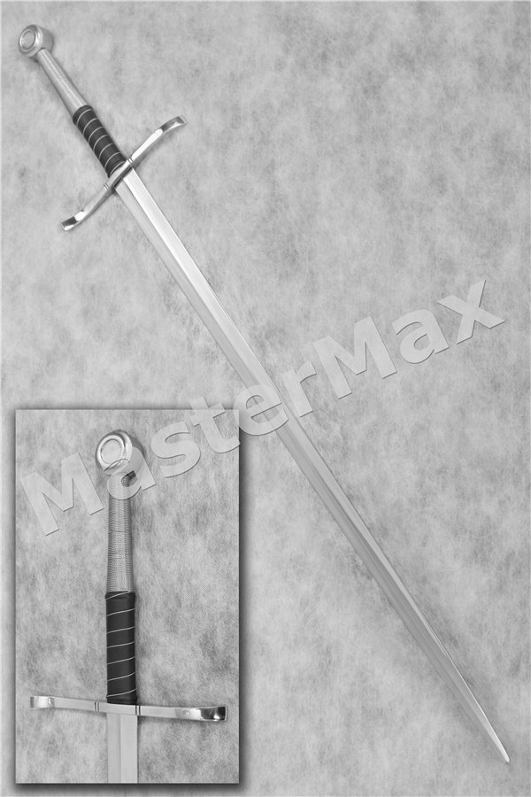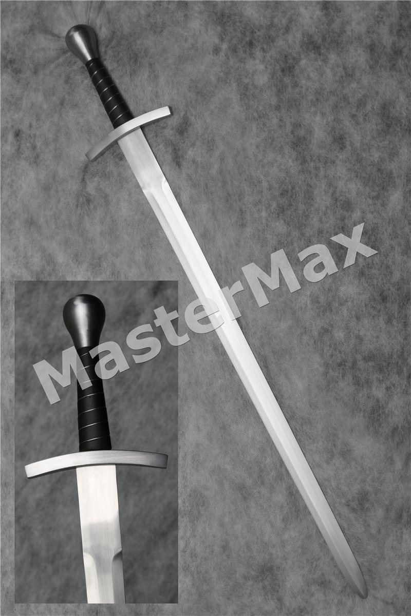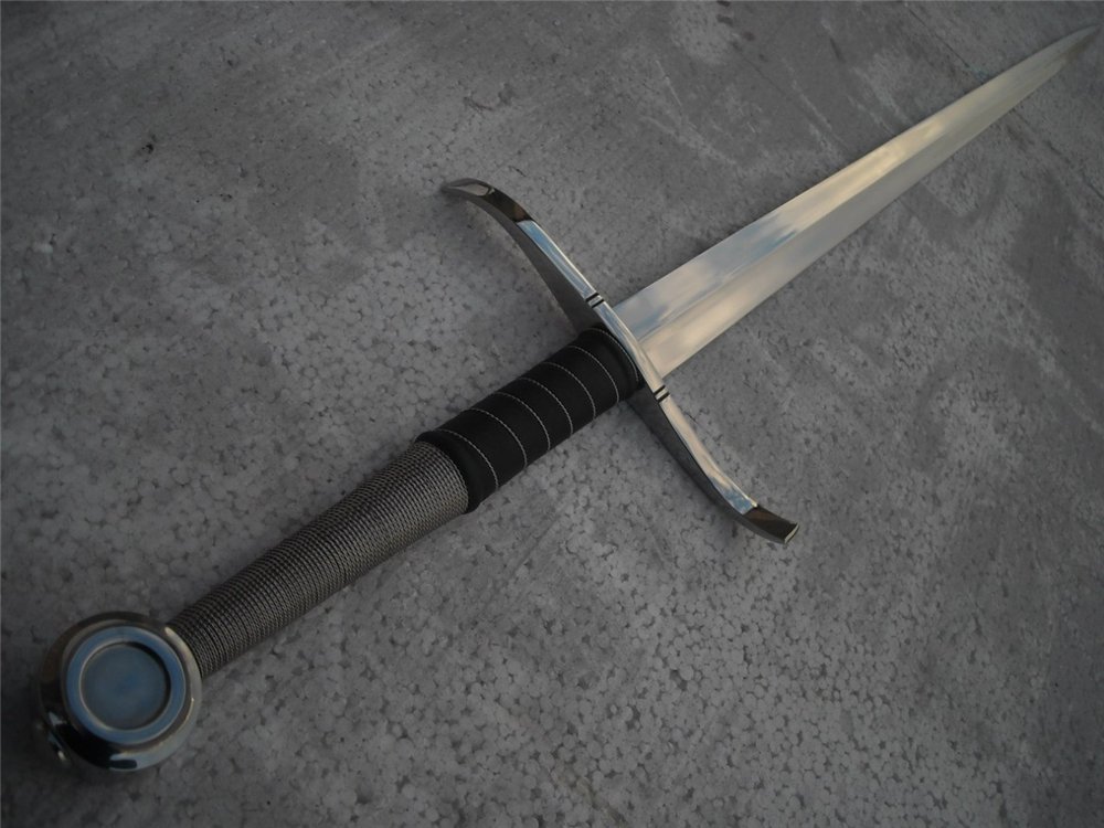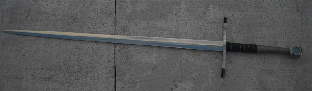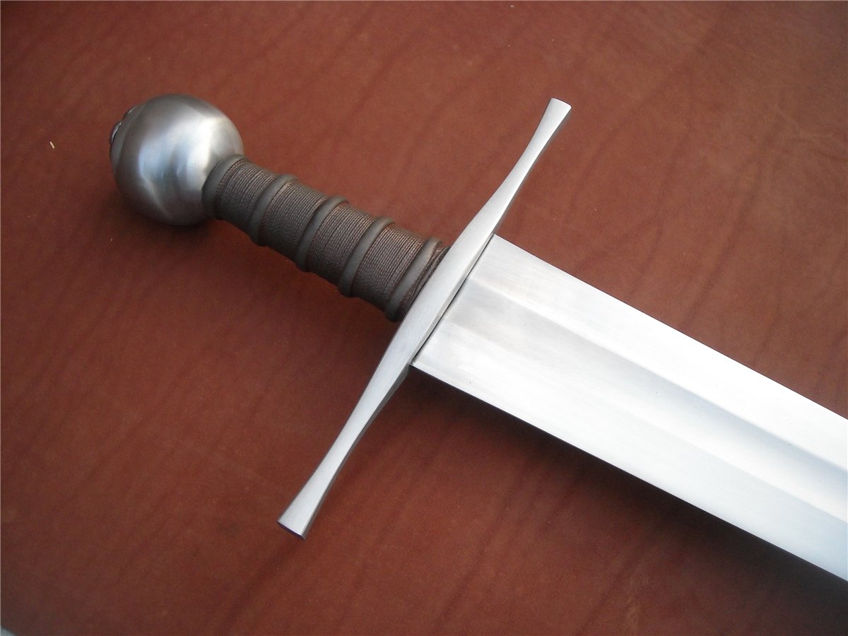 Меч турнирный. Сталь 65г. Закалка 50 единиц, длина обшая 97 см., лезвия 80 см., вес 1400 гр., шлифовка. Сечение клинка гексагональное. Рикассо у перекрестья. Неполирован. Цена 4700 р.