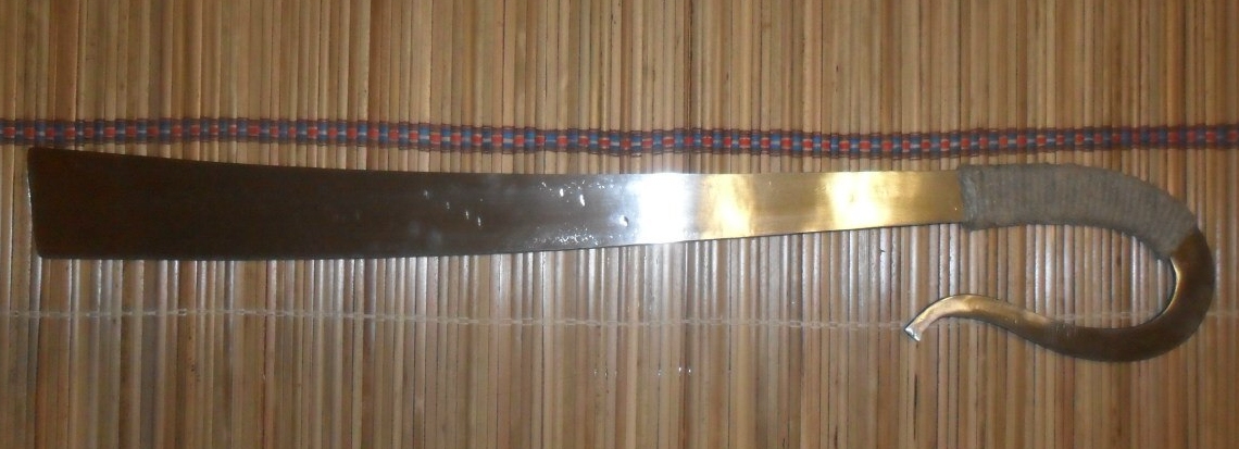 Эрзац- фальшион.дл.клинка до рукояти 65см.Сталь 65г.Закалка 50ед.Рукоять одмотана пенькой, рубящая кромка 5 мм. цена 3000р.