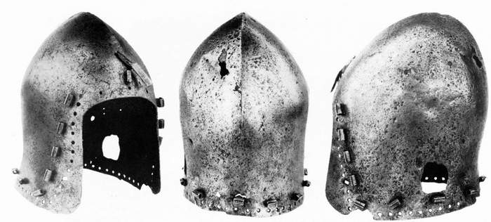 По фотографии бацинета из Нюрнберга не могу понять, как крепился подбородный ремень к шлему. Знающие люди, подскажите. Следов заклёпки вроде не видно(плохо смотрел?).