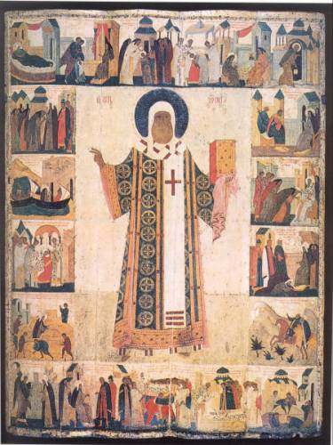 Кстати, в 14 в. белый клобук носил только архиепископ Великого Новгорода и митрополит. В Суздале, да и в других епархиях, епископы носили черный.