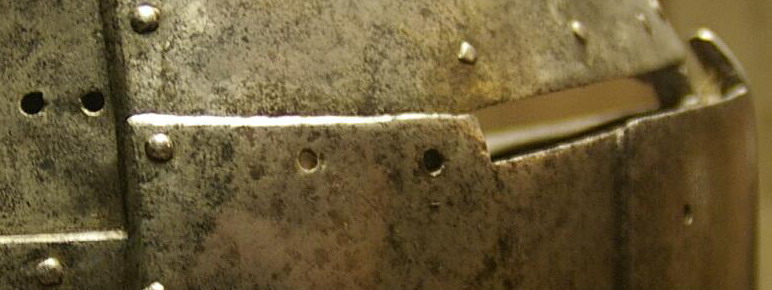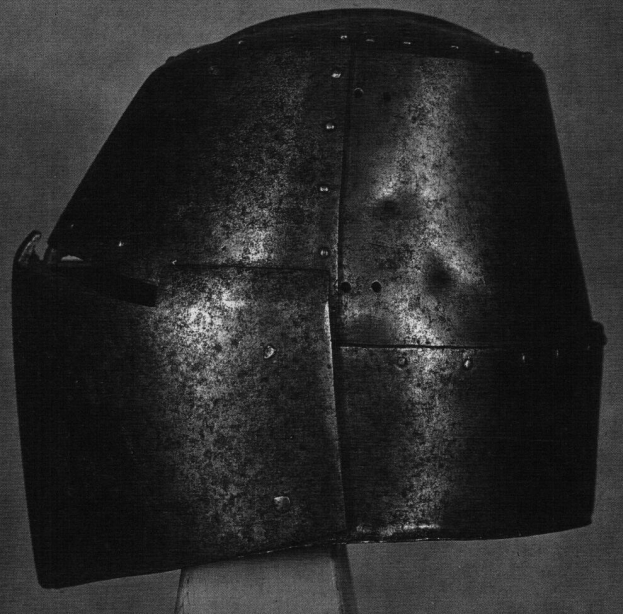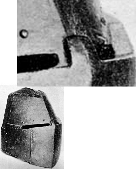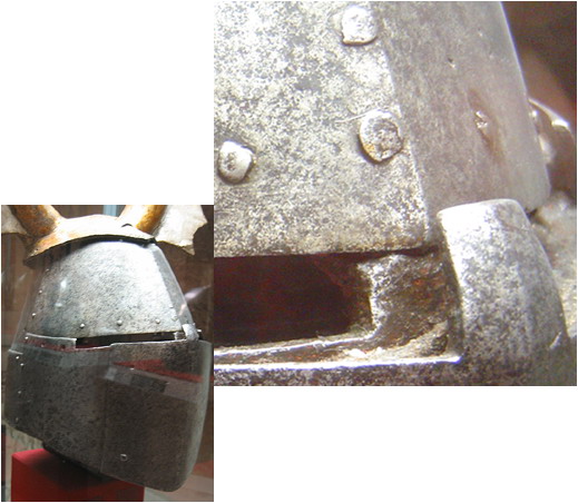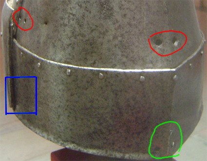 7) шлем изначально предназначался для турнира? и могли ли быть отверстия вентиляционные и (или) для цепи (возм. закрытые усиливающей пластиной)?