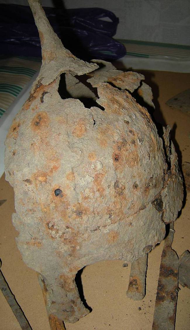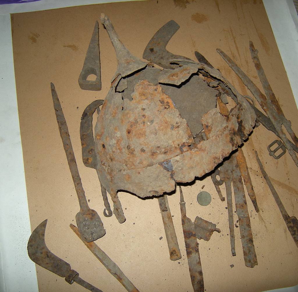 Если железо на фоне из одного места со шлемом, то автор перекапывает городище.