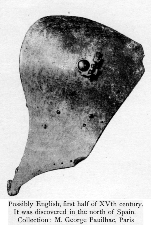 А на второй фотографии немецкий грандбацинет с датой 1400, очень интересный. Прям удивительный для такой ранней даты... Фото в фас нет? Получается,что забрало входит под вот ту приклёпанную пластину?