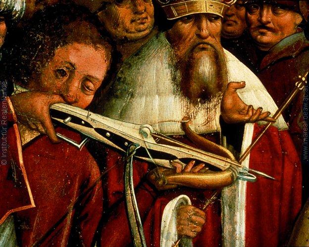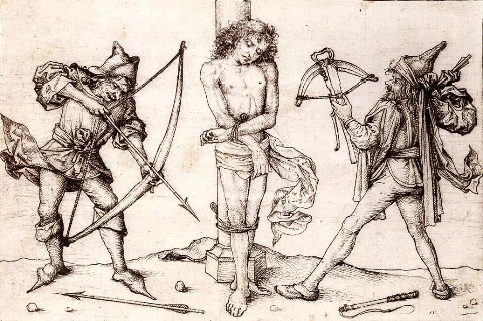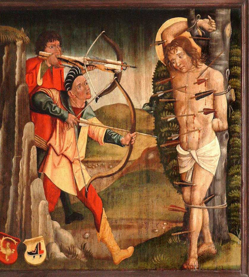 Многочисленные изображения со сценой казни Святого Себастьяна - ценный источник информации о развитии и территориальных особенностях европейских арбалетов, ведь художники рисовали своих современников с тем оружием, которое видели сами.